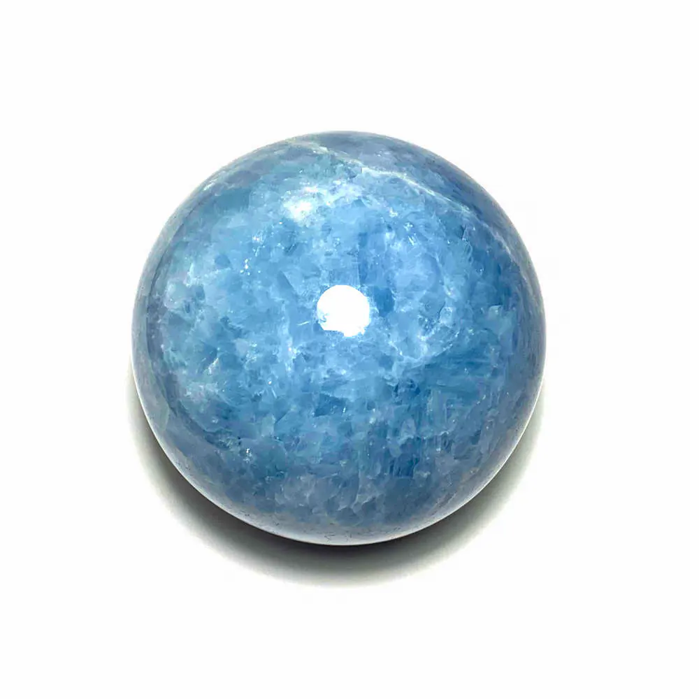 Eine wunderschöne Calcit Kugel mit tief blauer Farbgebung – auf Hochglanz poliert.