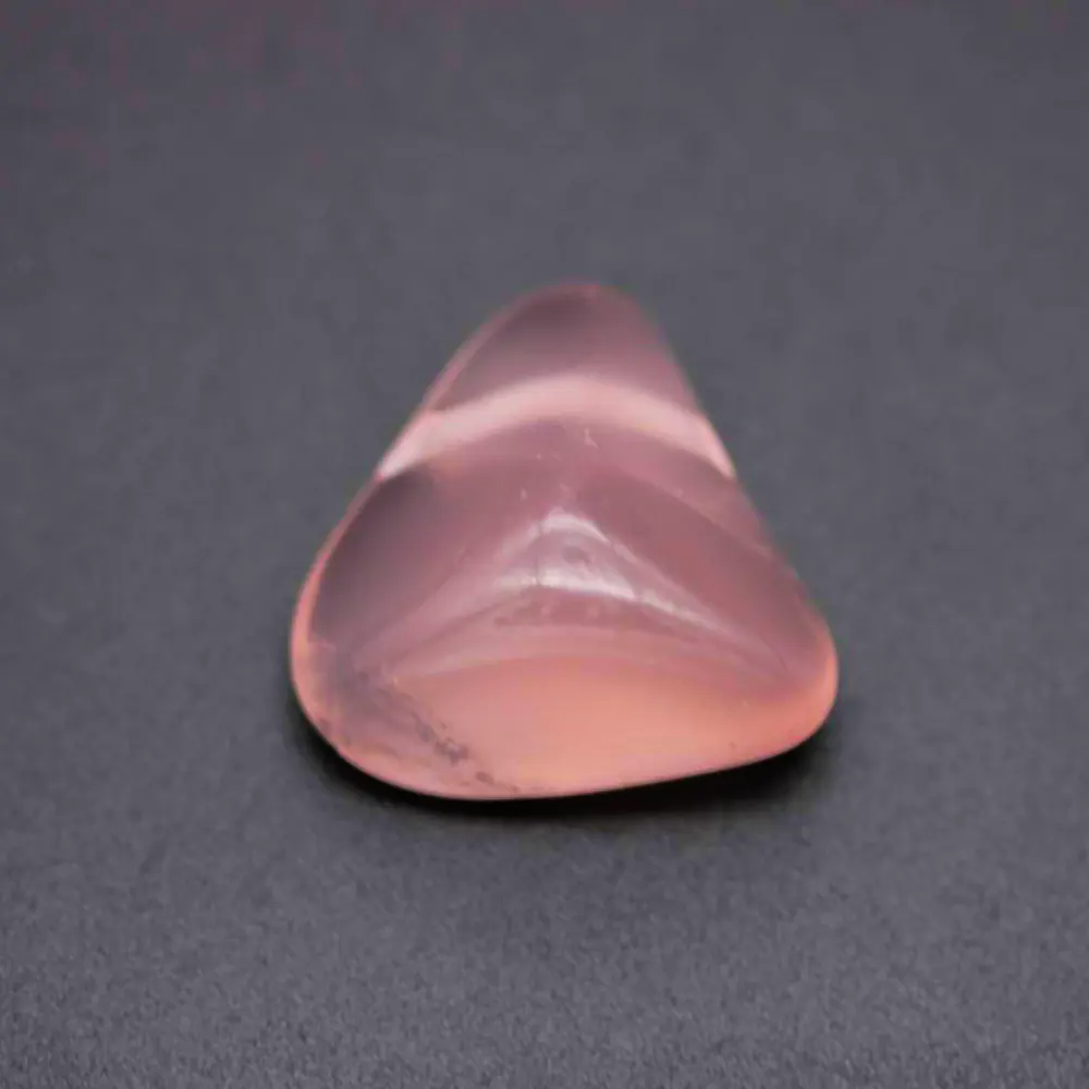 Ein wunderschöner Rosenquarz Anhänger. Dieser Rosenquarz ist gleichmäßig durscheinend und von einer intensiven, zartrosa Farbe. Außerdem besitzt er eine außergewöhnliche, pyramidische Form. Der Schmuckanhänger ist Handarbeit geschliffen und poliert worden.