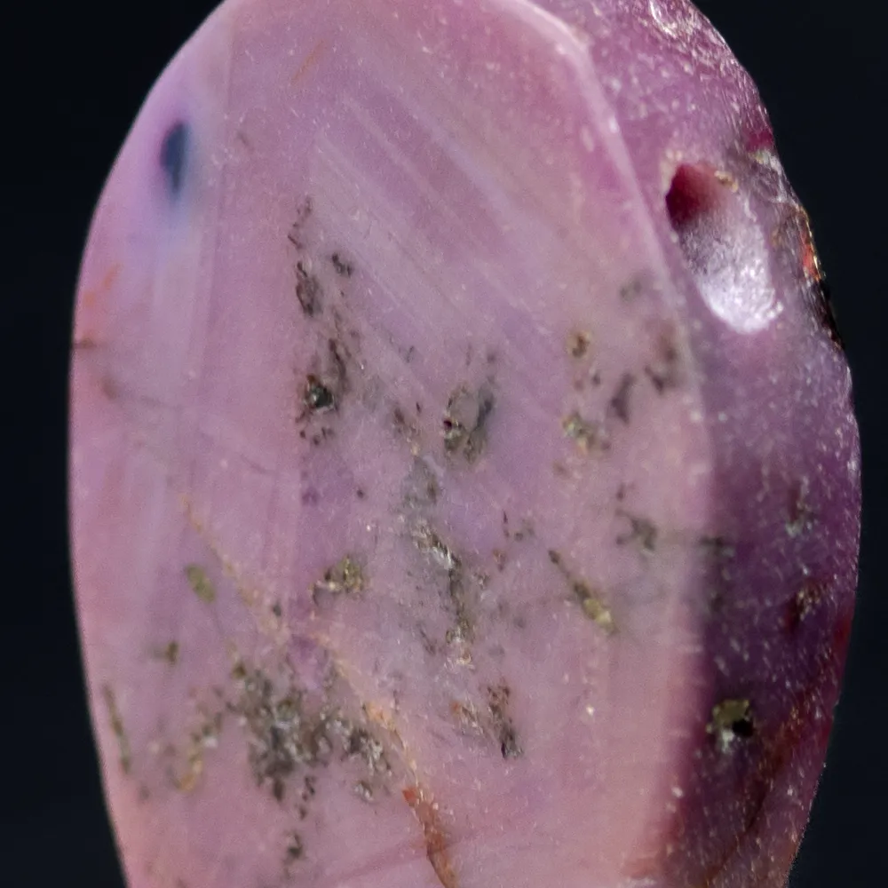 Dieser Rubin-Anhänger präsentiert sich in einem außergewöhnlichen Rosarot, durchzogen von feinen, dunklen Einschlüssen und natürlichen Maserungen. Die polierte Oberfläche hebt das Farbspektrum und die charakteristischen Adern des Rubins hervor, während kleine Unebenheiten den ursprünglichen Charme des Steins bewahren. So entsteht eine reizvolle Balance zwischen edlem Glanz und authentischem Charakter.
