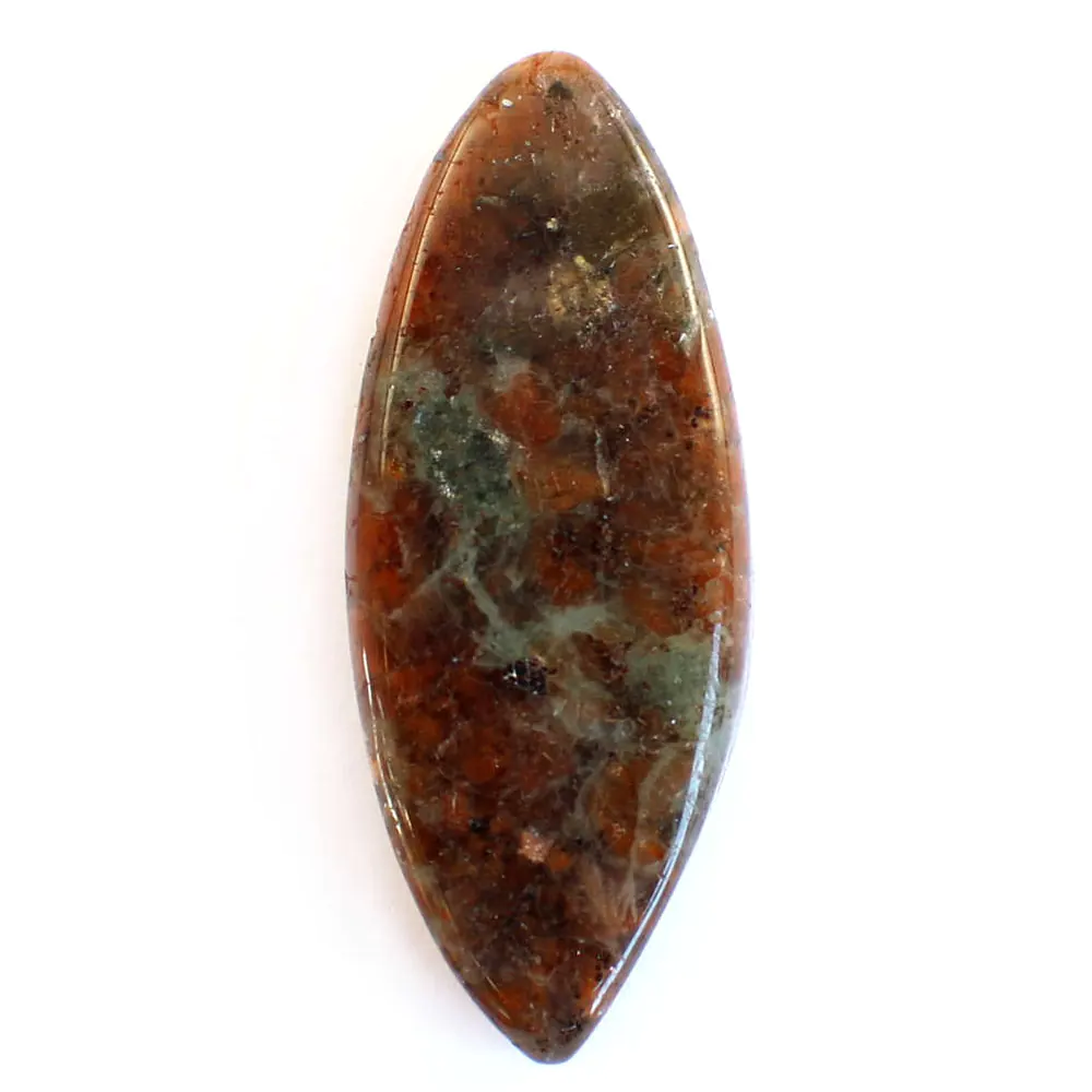 Ein wunderschöner Sonnenstein Anhänger mit Bohrung. Dieser Anhänger ist in Handarbeit geschliffen und poliert worden. Der Sonnenstein hat ein breites Spektrum an roten Erdtönen und der Stein durchzieht eine helle Maserung.