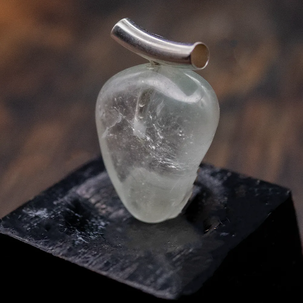 Ein schlichter und dennoch atemberaubender Topas Trommelstein Anhänger mit einer 925 Silberöse. Dieser Topas stammt aus Nigeria und fasziniert durch sein reines Weiß, das Reinheit und Klarheit verkörpert. Der Anhänger verbindet raffinierte Schlichtheit mit zeitloser Eleganz. Die 925 Silberöse betont nicht nur die natürliche Schönheit des Topas, sondern verleiht dem Schmuckstück auch einen Hauch von Luxus. Dieser Anhänger wird zum Ausdruck Ihrer feinen Geschmacksempfindung und unterstreicht subtil Ihre Persönlichkeit.